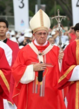 프란치스코 교황은 2014년 8월 한국을 방문해 아시아 청년대회 참석과 윤지충 바오로와 동료 124위의 시복식을 집전했습니다.