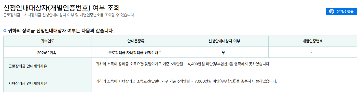 - 재산 합계액이 1.7억 원 이상 2.4억 원 미만인 경우, 해당 장려금의 50%만 지급됩니다.