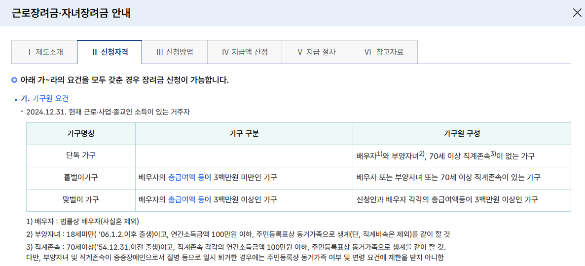 - **2024년 12월 31일 기준 만 18세 미만(2006년 1월 1일 이후 출생)**의 부양 자녀가 있어야 합니다.