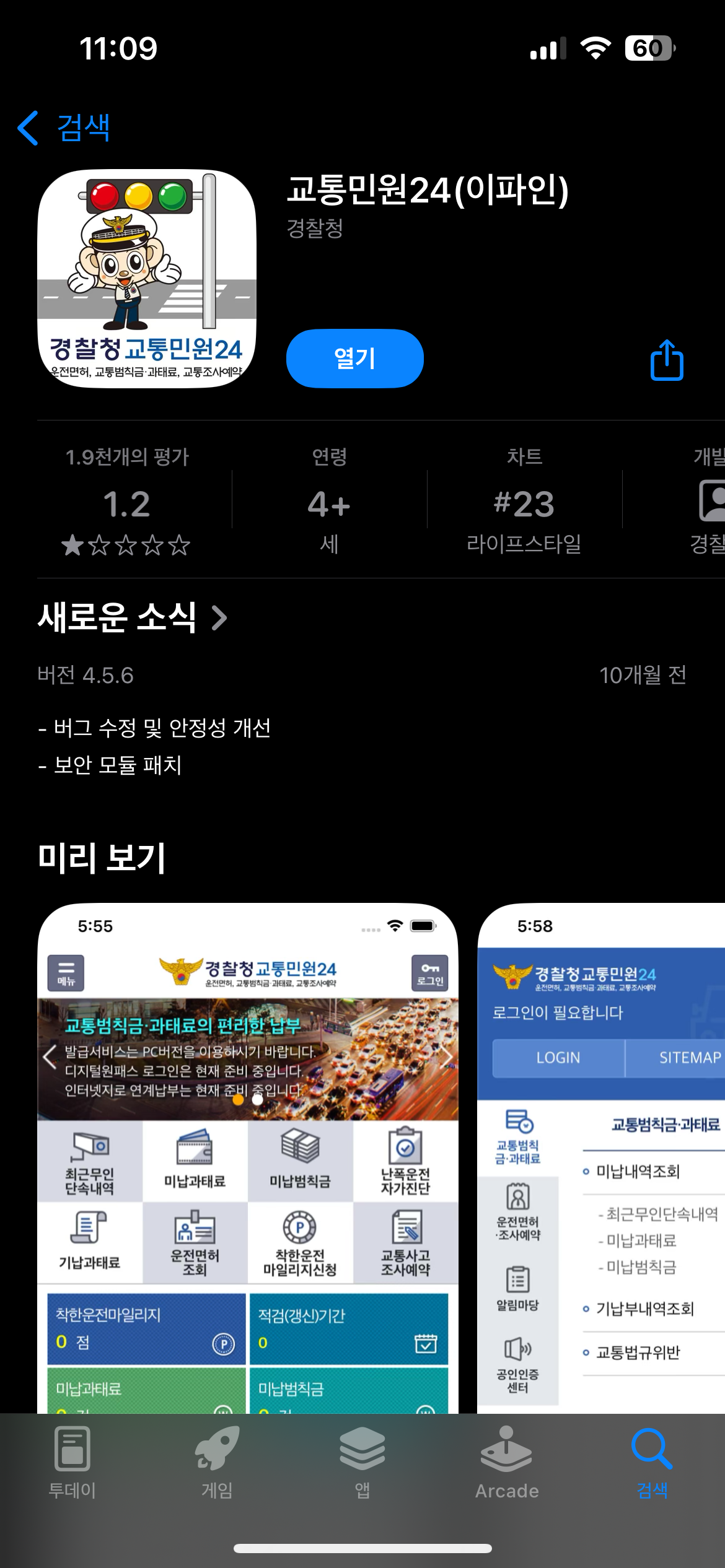 1. 앱스토어나 플레이스토어에서 '교통민원24'를 검색합니다.