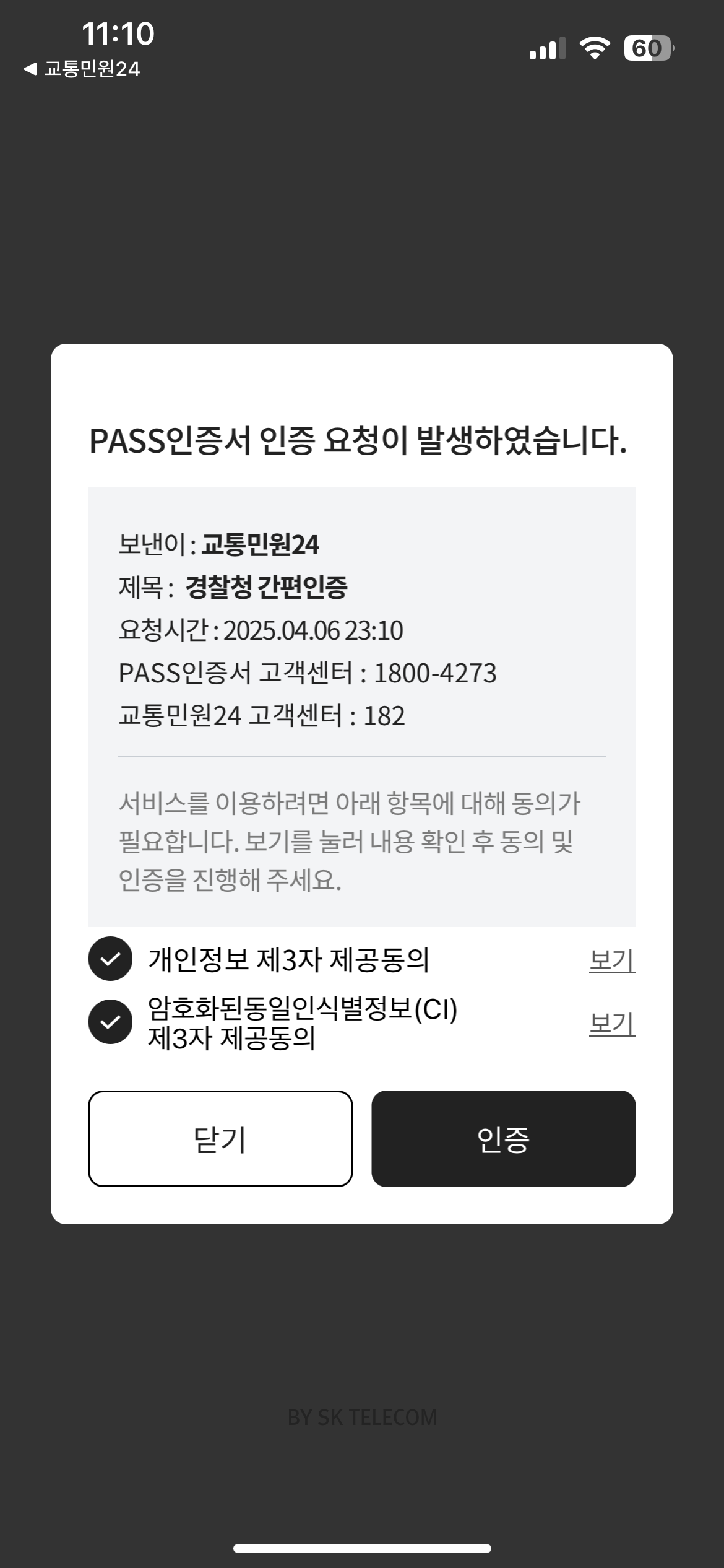 8. PASS 인증을 하고 어플로 돌아와 '인증완료'를 누릅니다.