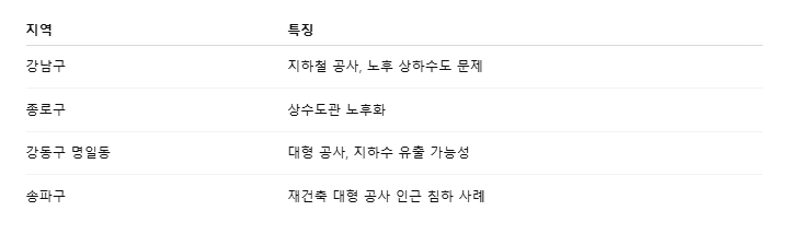 - 서울 종로구: 상수도관 파손으로 인한 지반 침하 사례