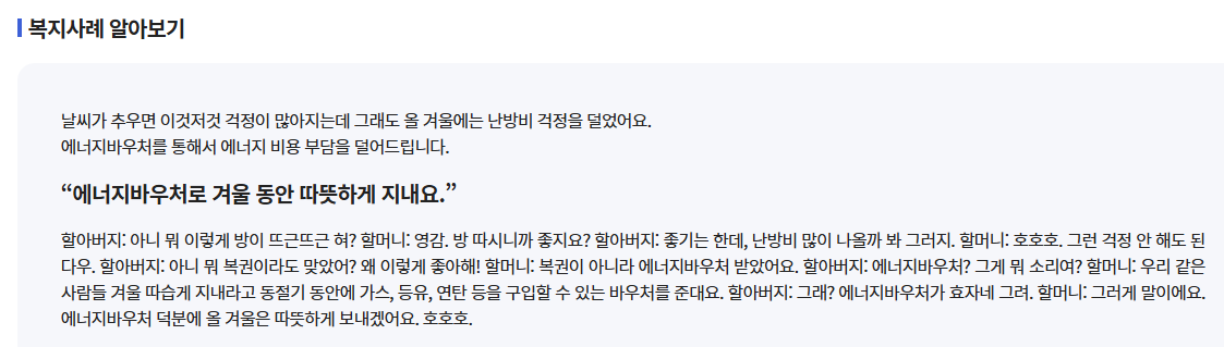 - 복지로 로그인 → 서비스 신청 → 복지서비스 신청 → 복지급여 신청 → 저소득층 → 에너지바우처