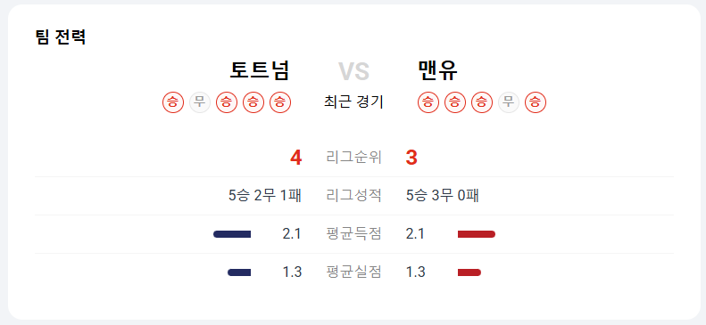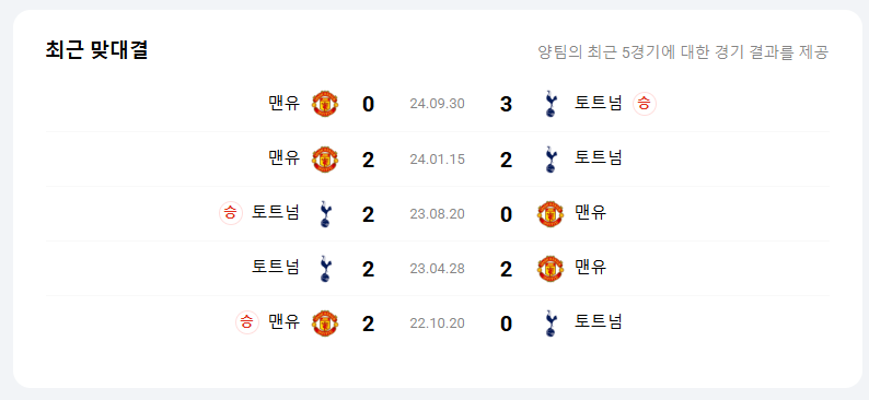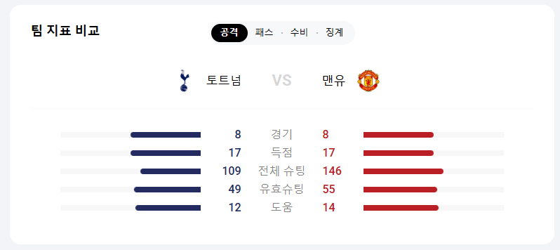 하지만 토트넘은 손흥민, 제임스 매디슨, 히샬리송 등 다양한 공격 옵션을 보유하고 있으며, 최근 몇 년 사이 맨유전에서 나쁘지 않은 성적을 보여주고 있습니다.