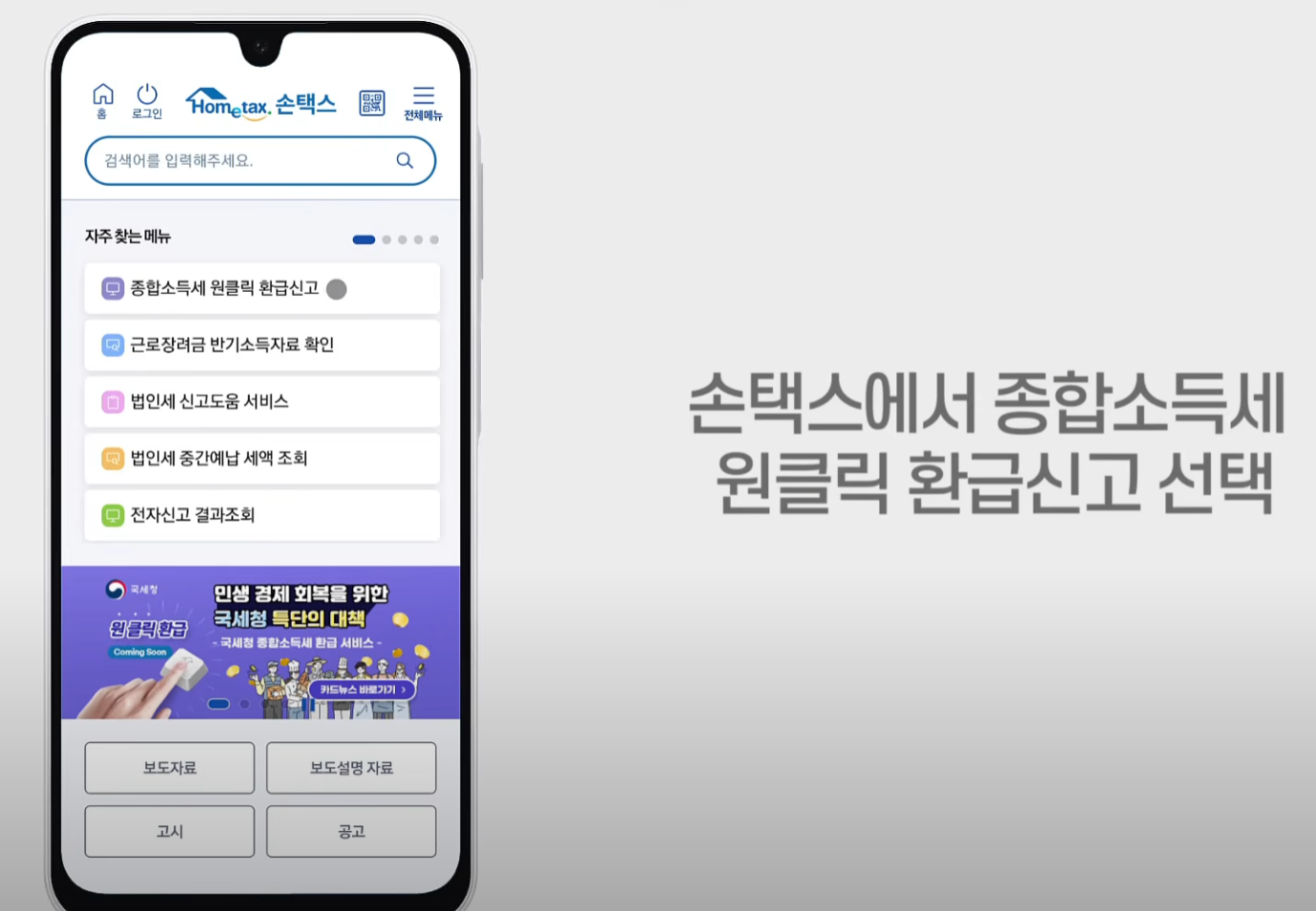 국세청 원클릭 서비스 내용 및 환급 신청 방법 다운로드