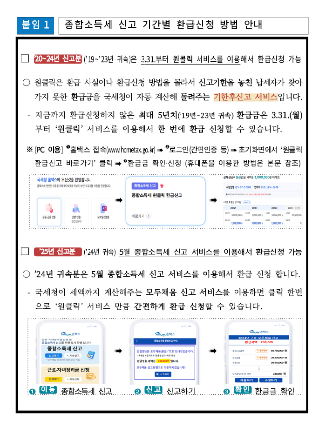 2025년부터 도입된 국세청 원클릭 환급 서비스는