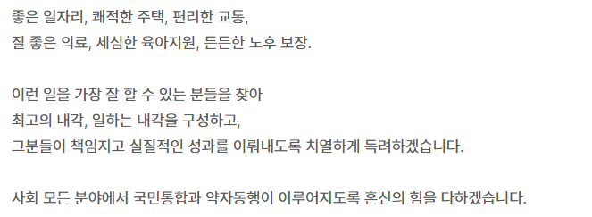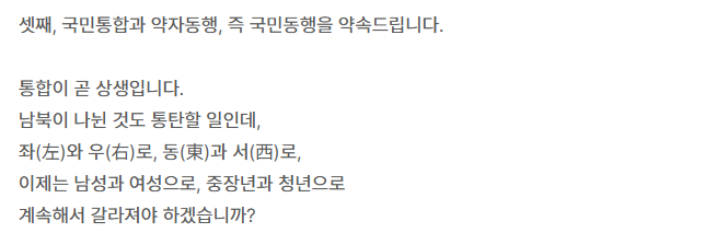 특히 사회적 약자와 소외계층에 대한 동행 정책을 강조하며, “약자의 고통은 정부의 책임”이라는 소신을 드러냈습니다.