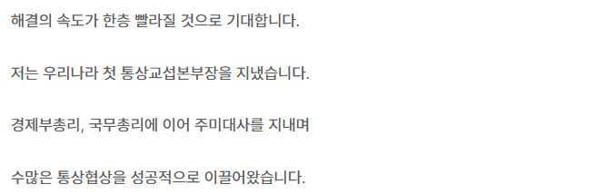그는 현재 미국과의 통상 현안 해결이 시급한 과제라며, “워싱턴을 잘 아는 통상 전문가로서, 복잡한 글로벌 이슈에 전략적 해법을 제시할 수 있다”고 주장했습니다.