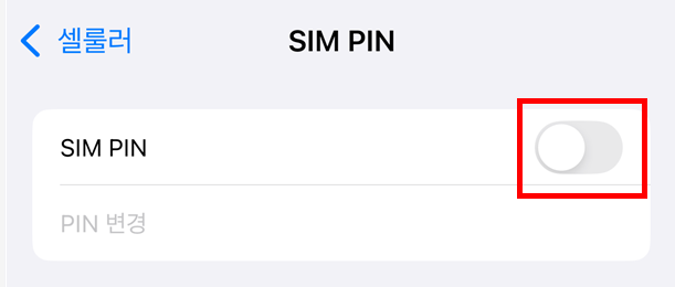 3. SIM PIN 오른쪽 활성화 버튼을 누른다.