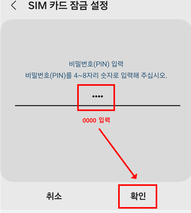 ※ 설정 완료 후에는 휴대폰을 껐다 켜거나 유심을 교체할 경우 PIN 입력이 필요,